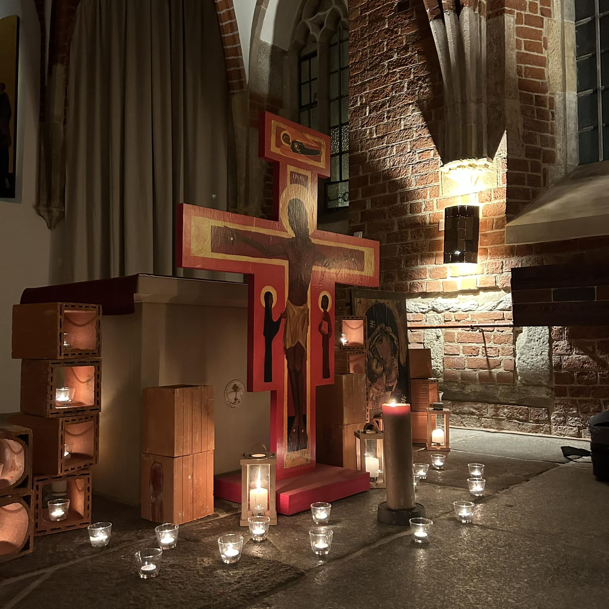 Jest to cykl spotkań ze sztuką współczesną w przestrzeni sakralnej we Wrocławiu. Dwa razu w roku chcemy w ramach tego projektu zaprosić do dialogu — między artystą a odbiorcą, między tradycją a współczesnością, między tym, co materialne, a tym, co duchowe. Projekt ma na celu stworzenie przestrzeni, w której sztuka staje się formą medytacji nad prawdą, pięknem i tajemnicą istnienia.